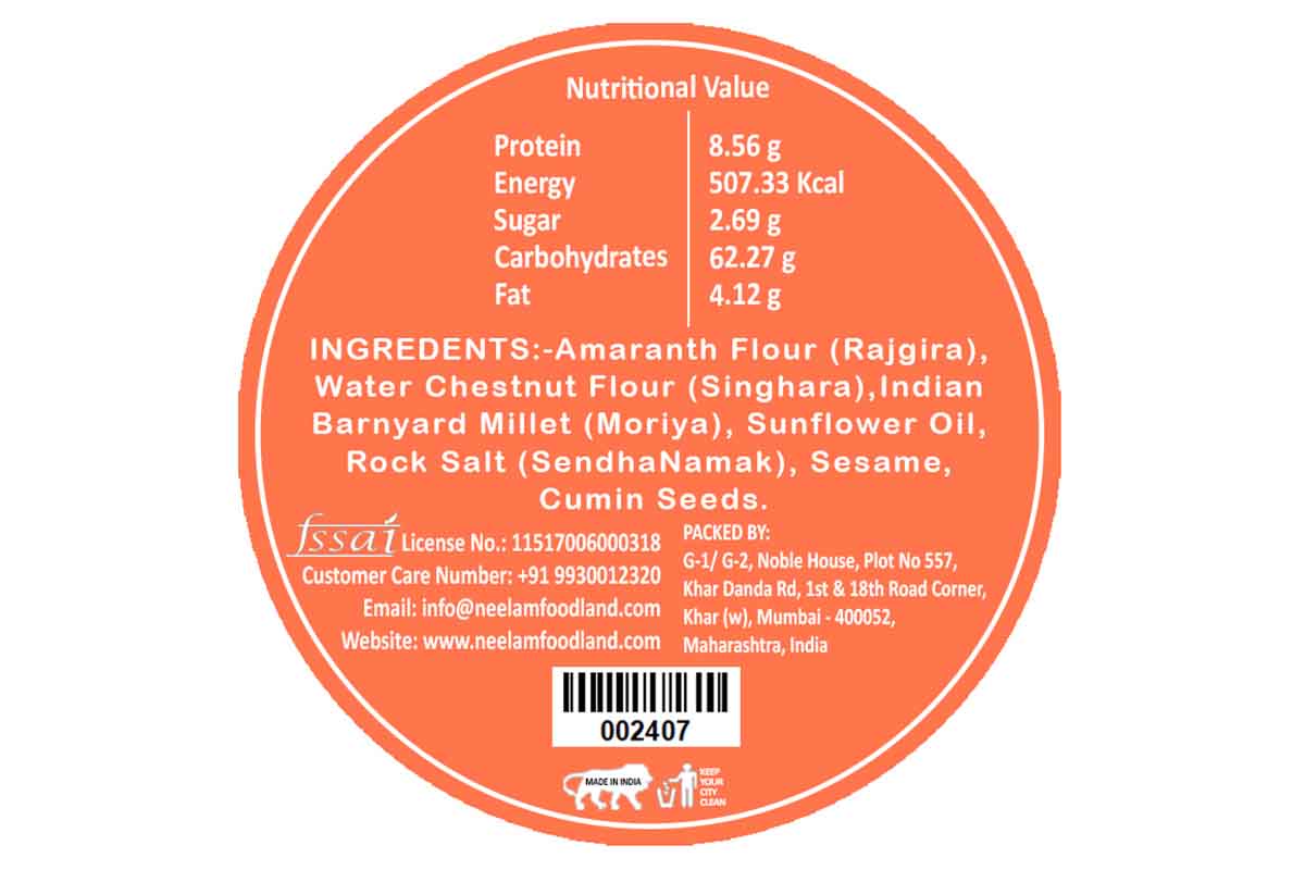 Gluten Free Farali Jeera Bhakri 200 Gm
